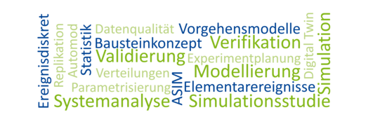 Die Studierenden erlernen in diesem Modul die Grundlagen der ereignisdiskreten Simulation (discrete-event simulation, DES) sowie deren praktische Anwendung in Fragestellungen der Materialflusstechnik. Dazu wird das Vorgehensmodell für Simulationsstudien nach VDI 3633.1 diskutiert. In den spezifischen Grundlagen der Statistik werden insbesondere die zur Analyse und Generierung von Eingabedaten sowie die zur Einordnung und Bewertung der erzeugten Ausgabedaten verwendeten Verfahren behandelt. Zu den weiteren Themengebieten gehören die Experimentplanung und –auswertung sowie die Vorgehensmodelle und Techniken der Verifikation und Validierung. Dabei wird explizit die organisatorische Einbettung von Simulationsstudien in Planungsprojekten behandelt.